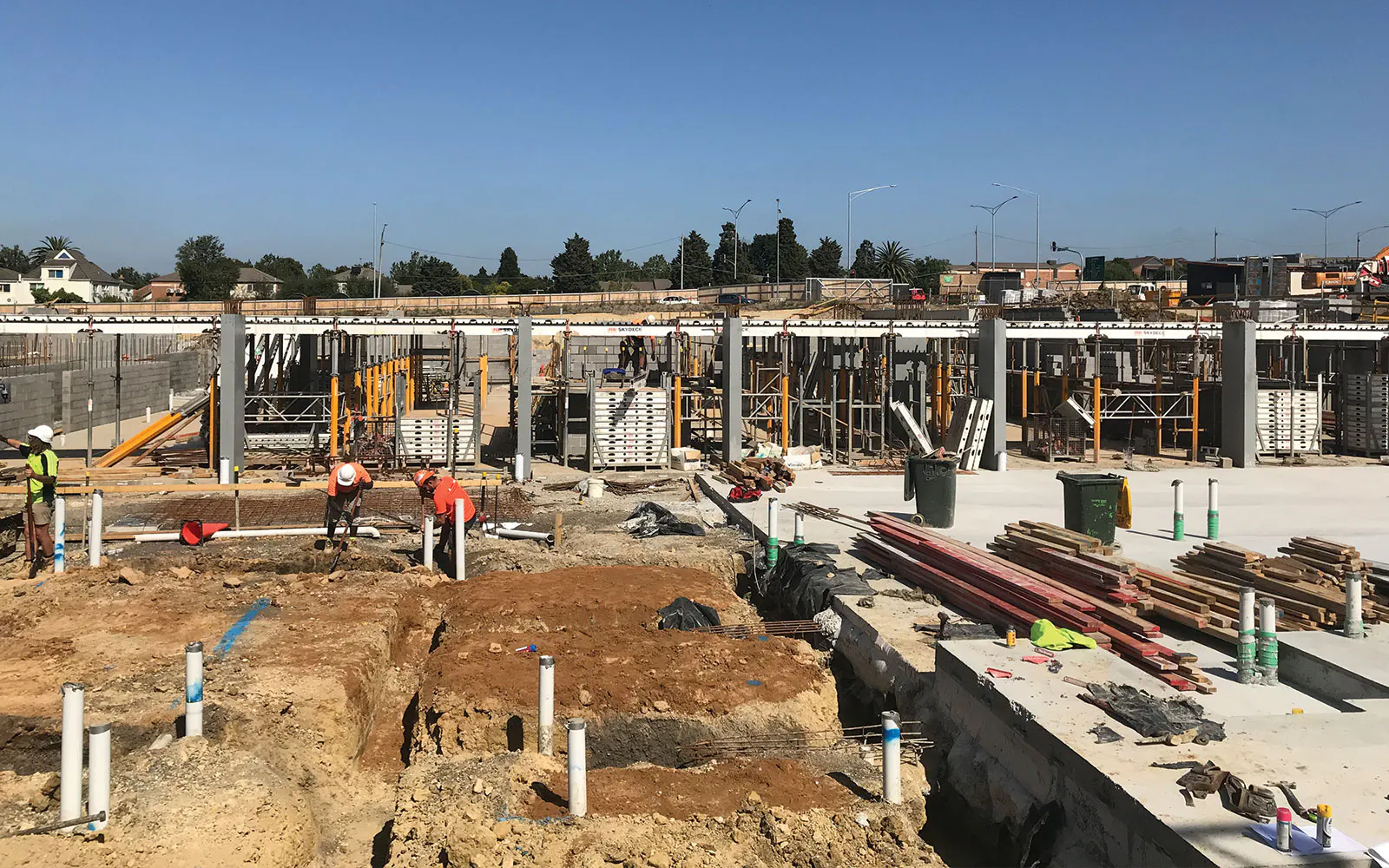 Glenvill Projects are diligently working their way down the to-do list for the basement structure. After months spent on the unseen infrastructure, we’re entering the exciting part of the build where the progress is in plain sight – starting with the columns that are popping up all over this precinct.