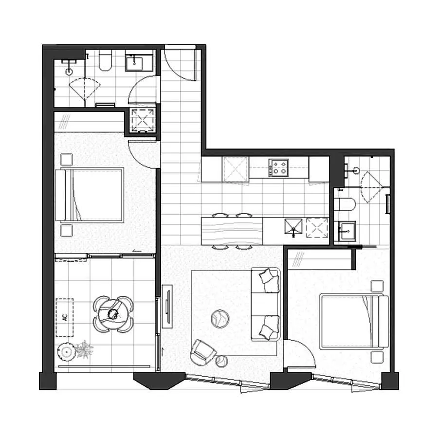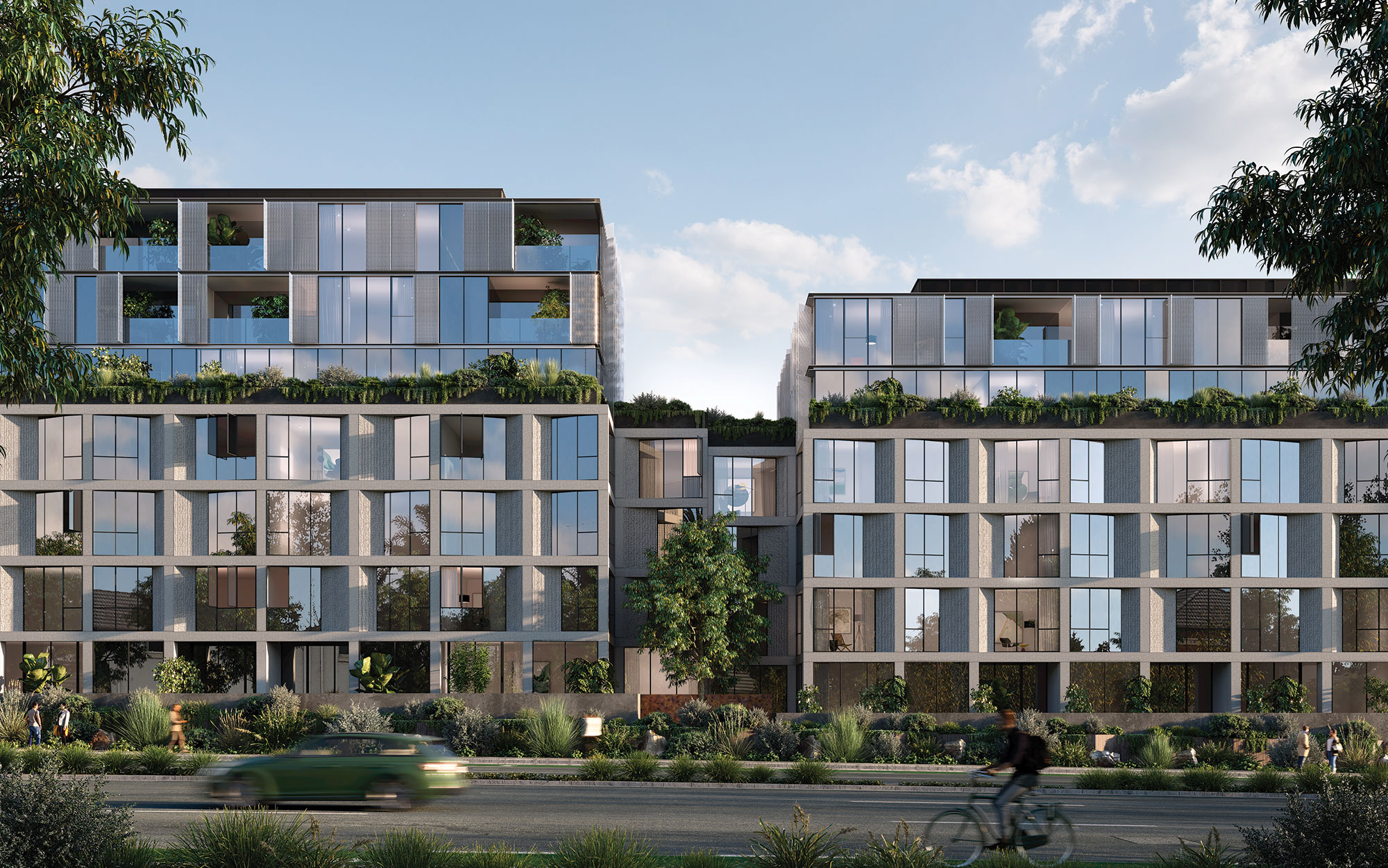 — Sophisticated timber and metal finishes subtly reference the Outer Circle railway that once stood here.