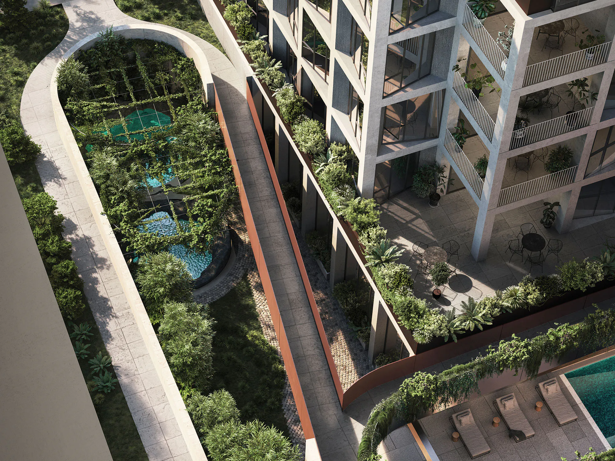 Brought to life by Elenberg Fraser, Papersmith Apartments are a stunning display of future-focused architecture. Across four buildings - each with its own entrance - concrete frames and corten steel echo the site's industrial past, balanced by lush landscaping.