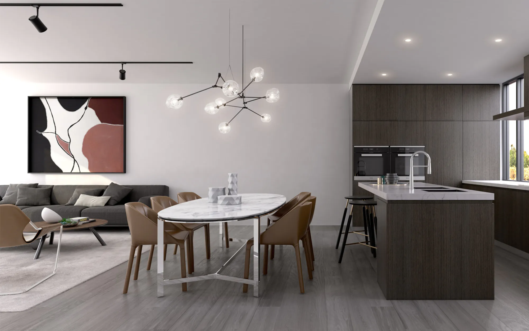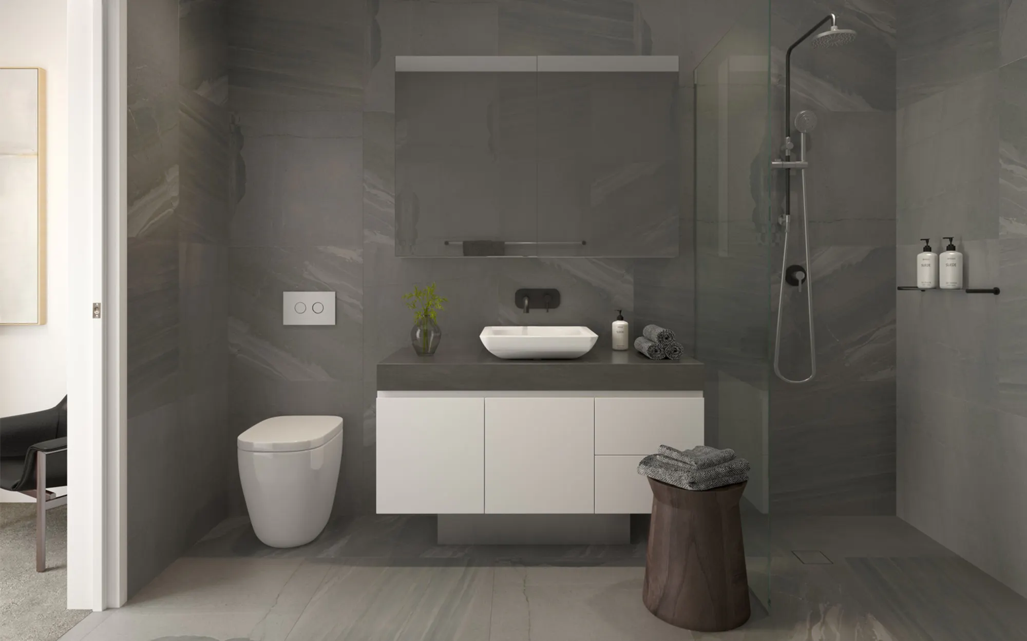 To complement magnificent vistas enjoyed from large windows, Parkview townhouses offer refined interiors that celebrate natural finishes. Timber floors, stone benchtops and a perfectly balanced palette complement abundant natural light and year-round views of leafy treetops.